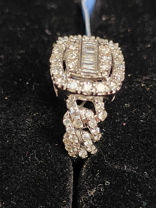 10k White Gold Female Ring - Size 7 - Cuban Link Band - 1.15CT Si Diamonds